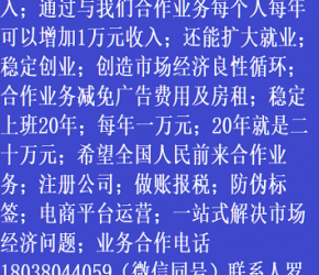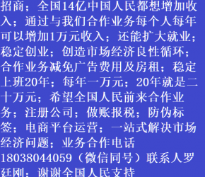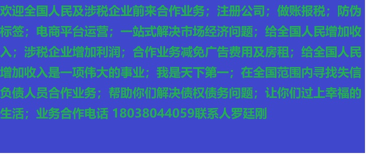 人進(jìn)寶城全國招商;合作業(yè)務(wù)減免廣告費用;歡迎全國涉稅企業(yè)前來合作;業(yè)務(wù)合作電話 18038044059 聯(lián)系人羅廷剛